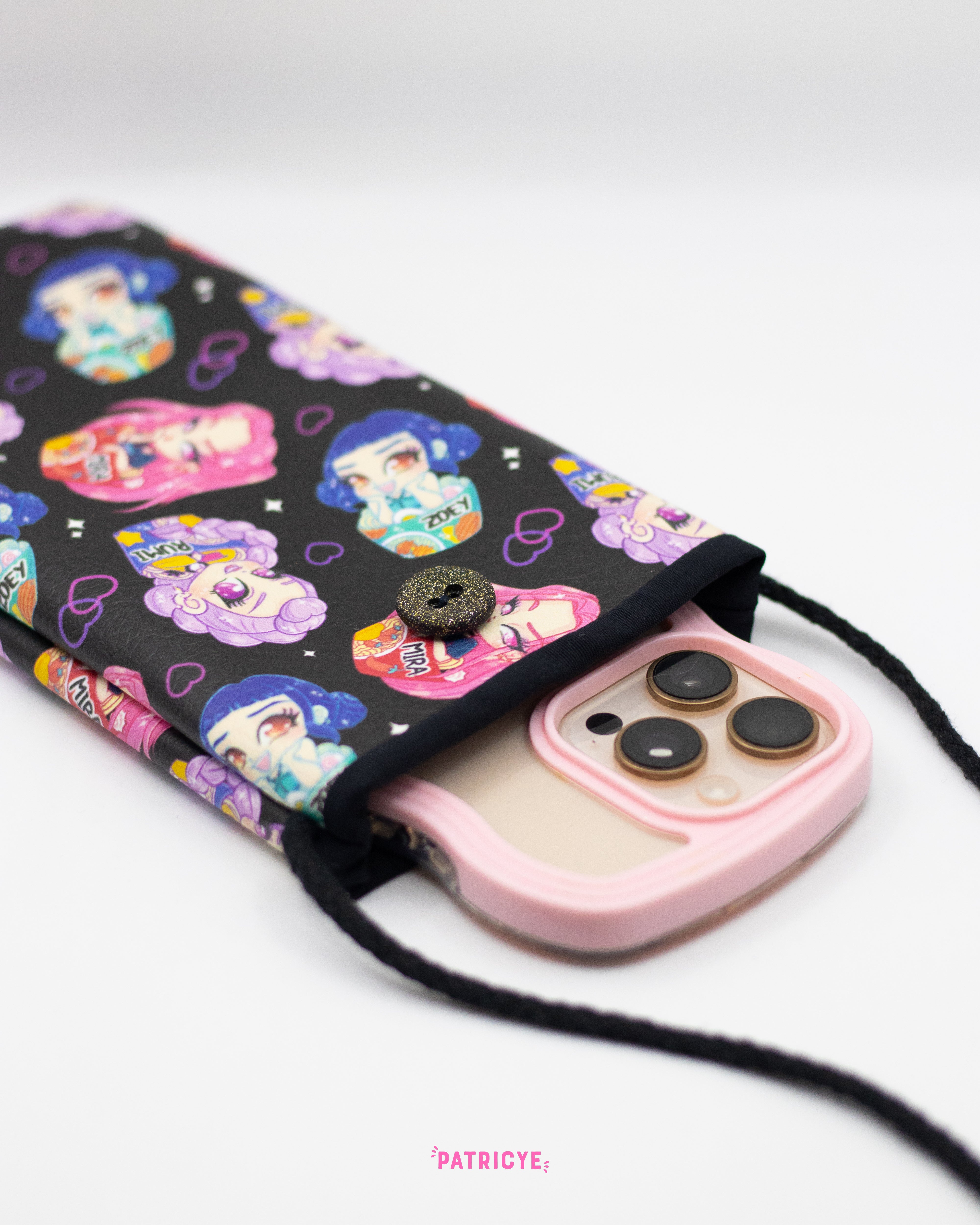 Lleva tu móvil a todas partes con estilo gracias al bolso HUNTRIX RAMEN. Su diseño vibrante presenta a las tres protagonistas rodeadas de sus deliciosos ramens, combinando diversión y funcionalidad. Perfecto para proteger tu móvil mientras añades un toque único a tu look diario.