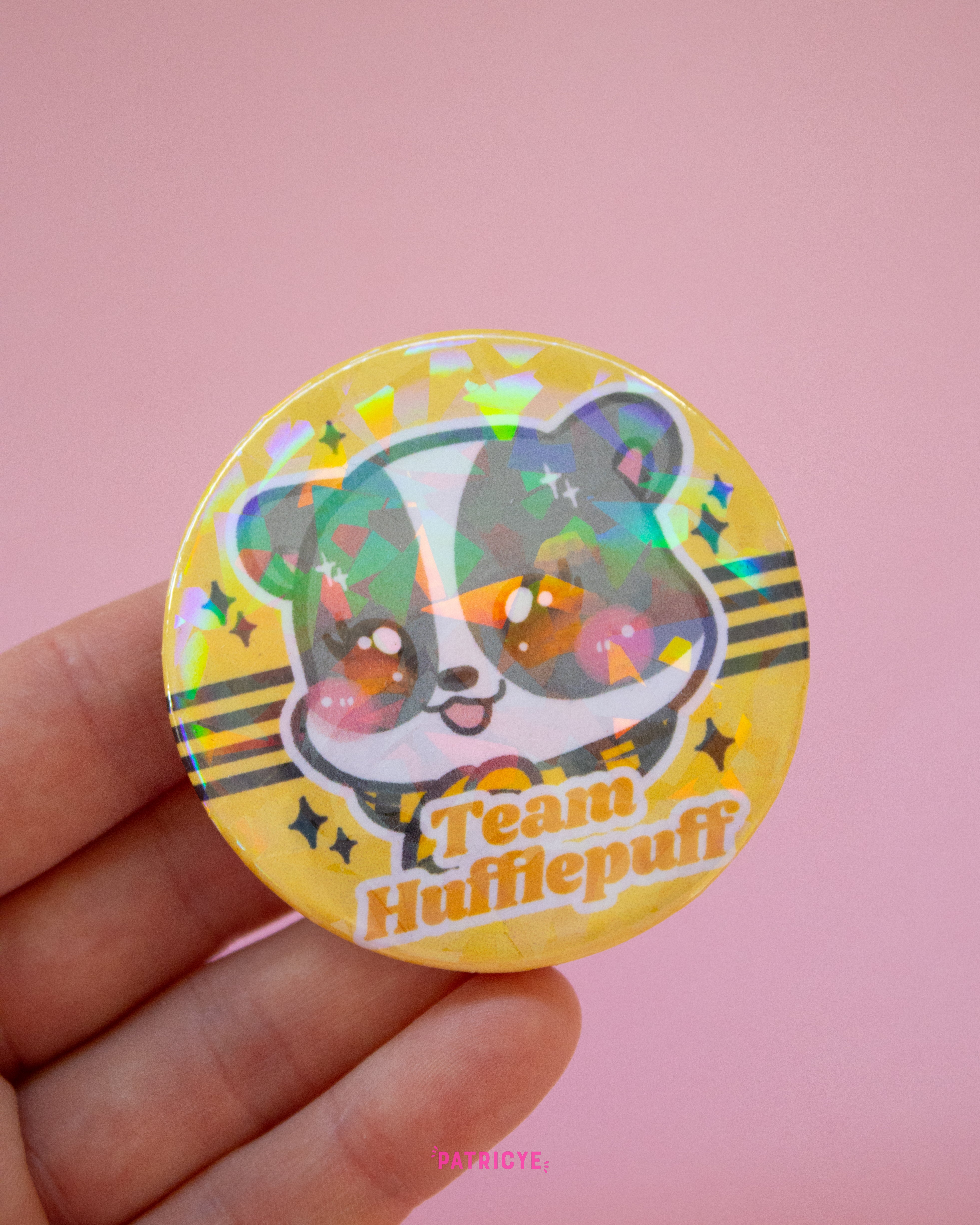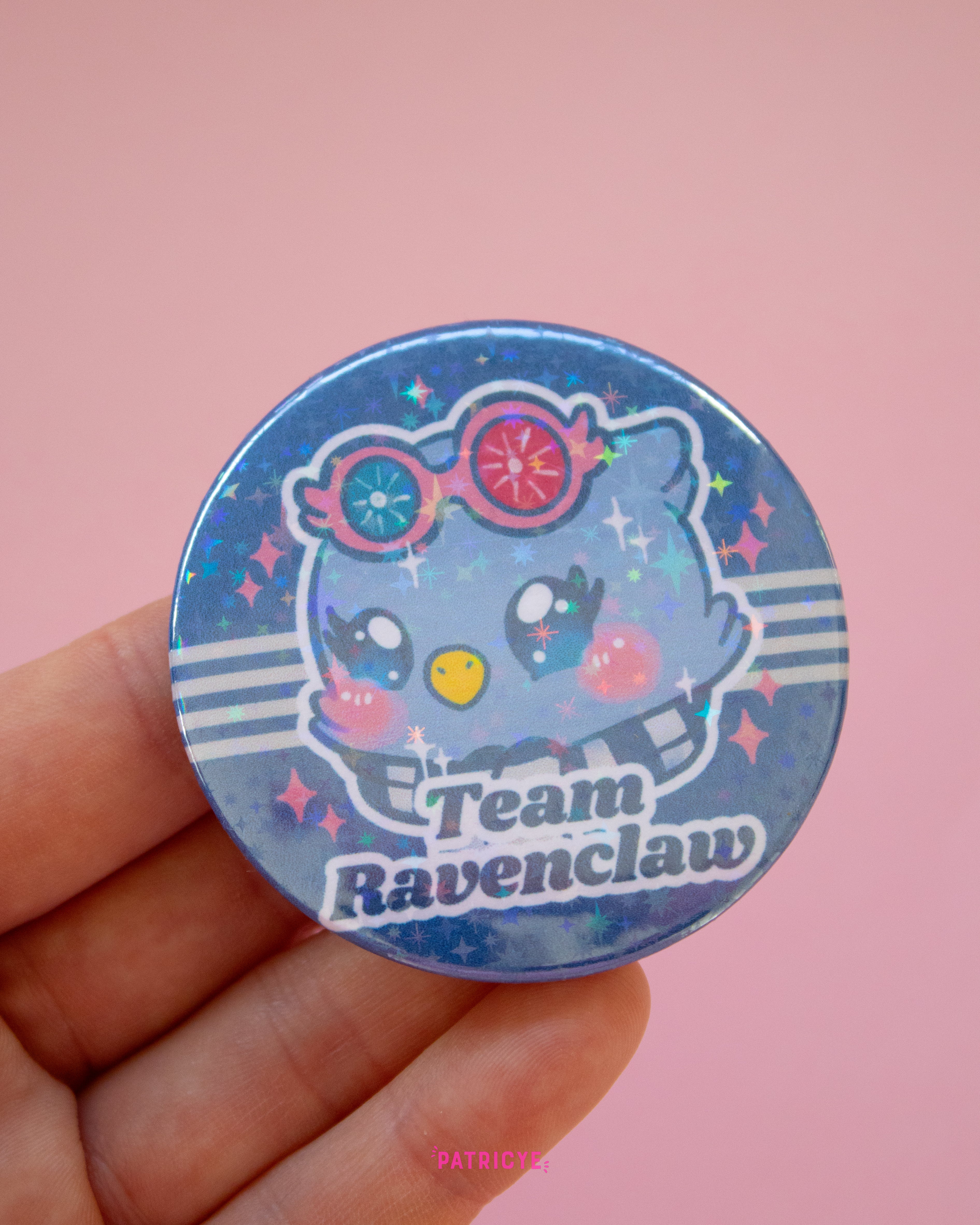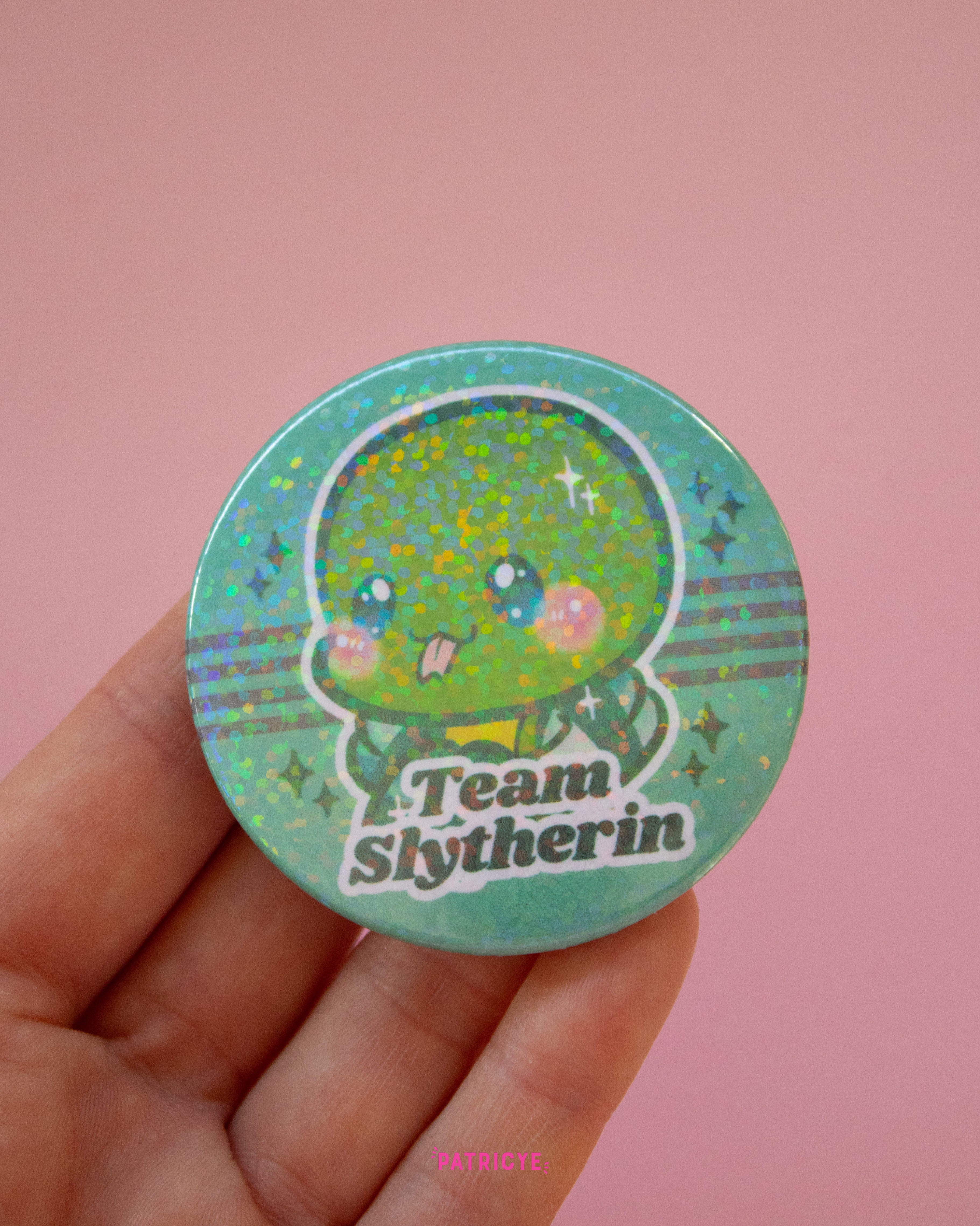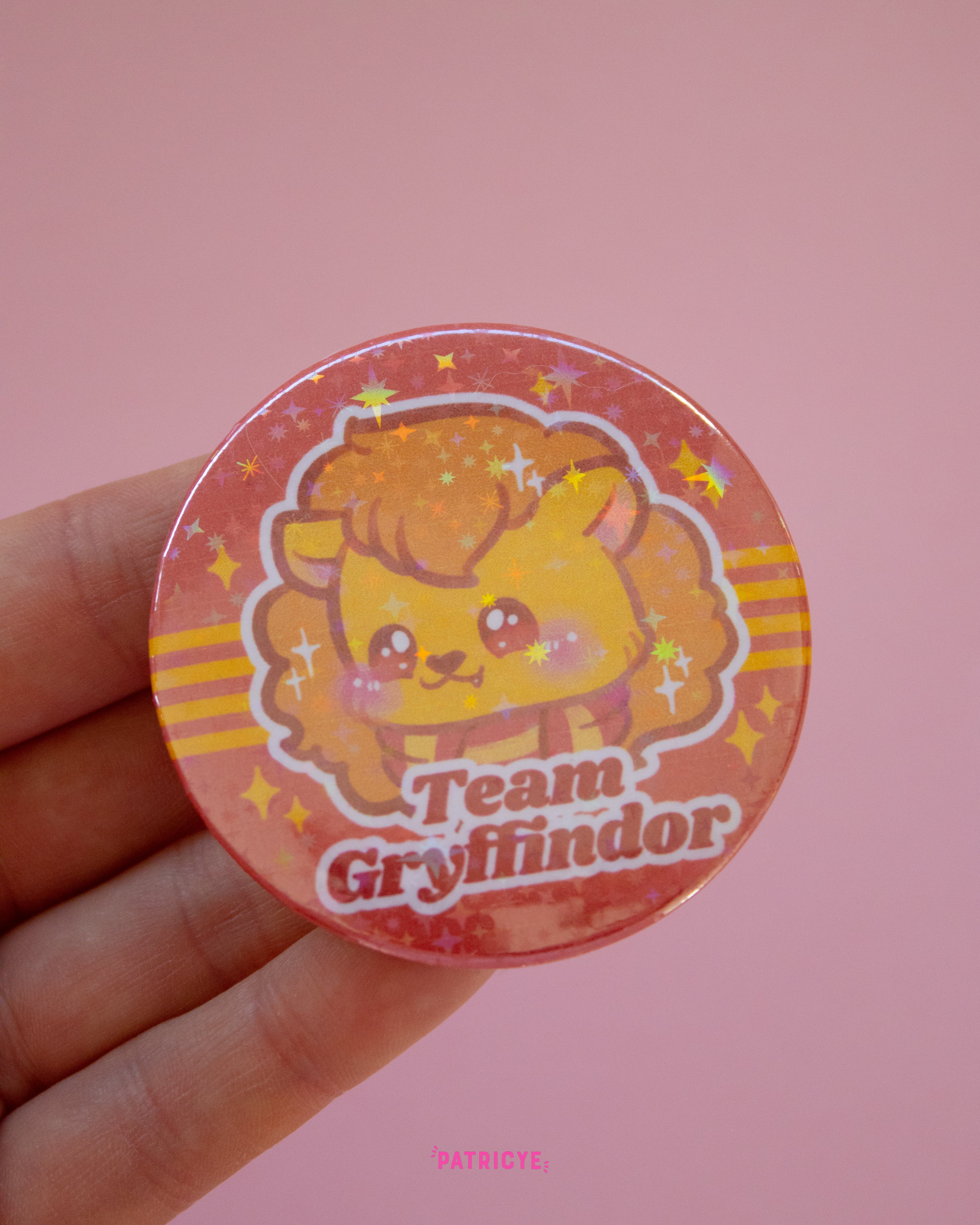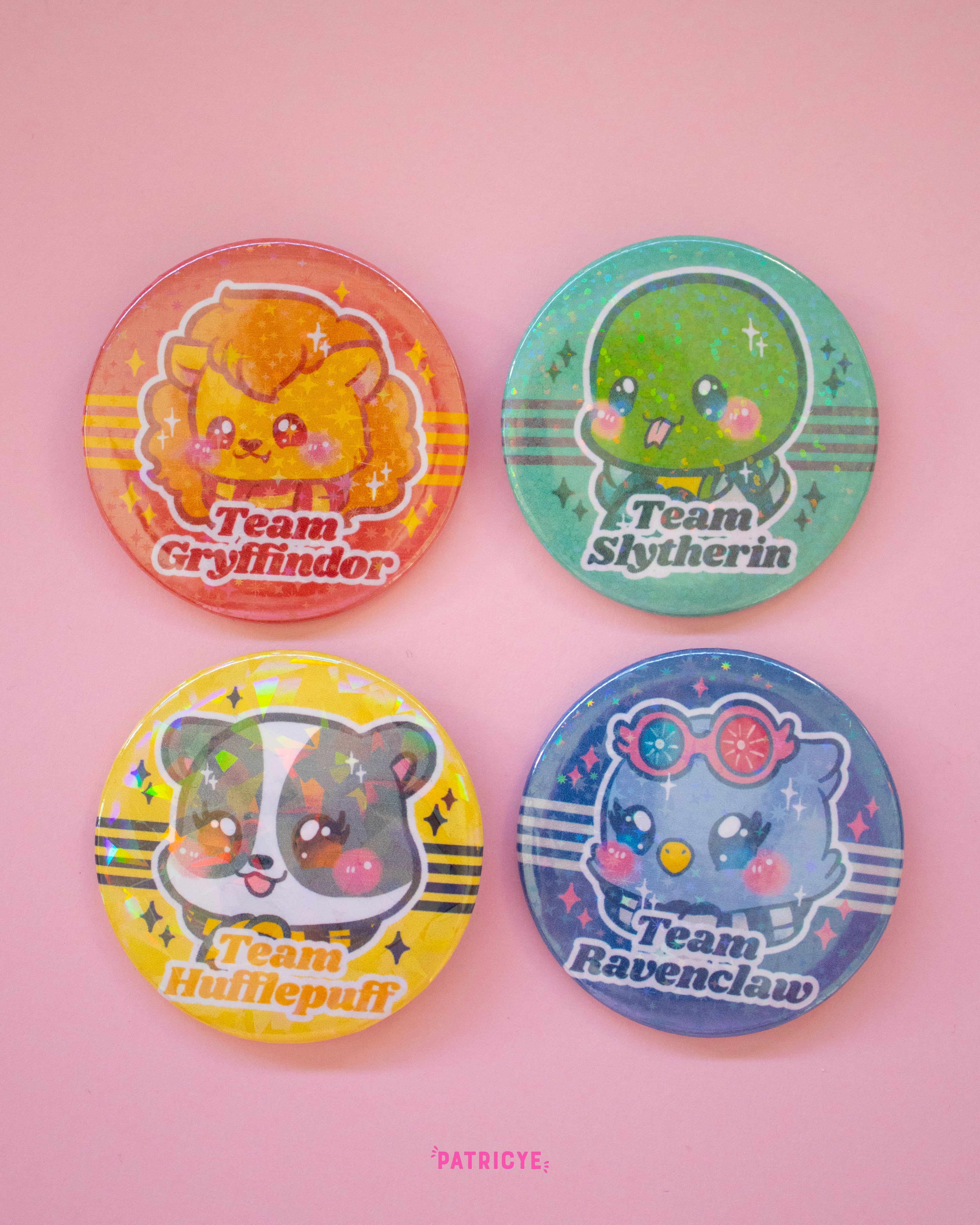 Chapas con acabado holográfico basadas en las 4 casas de Hogwarts.
