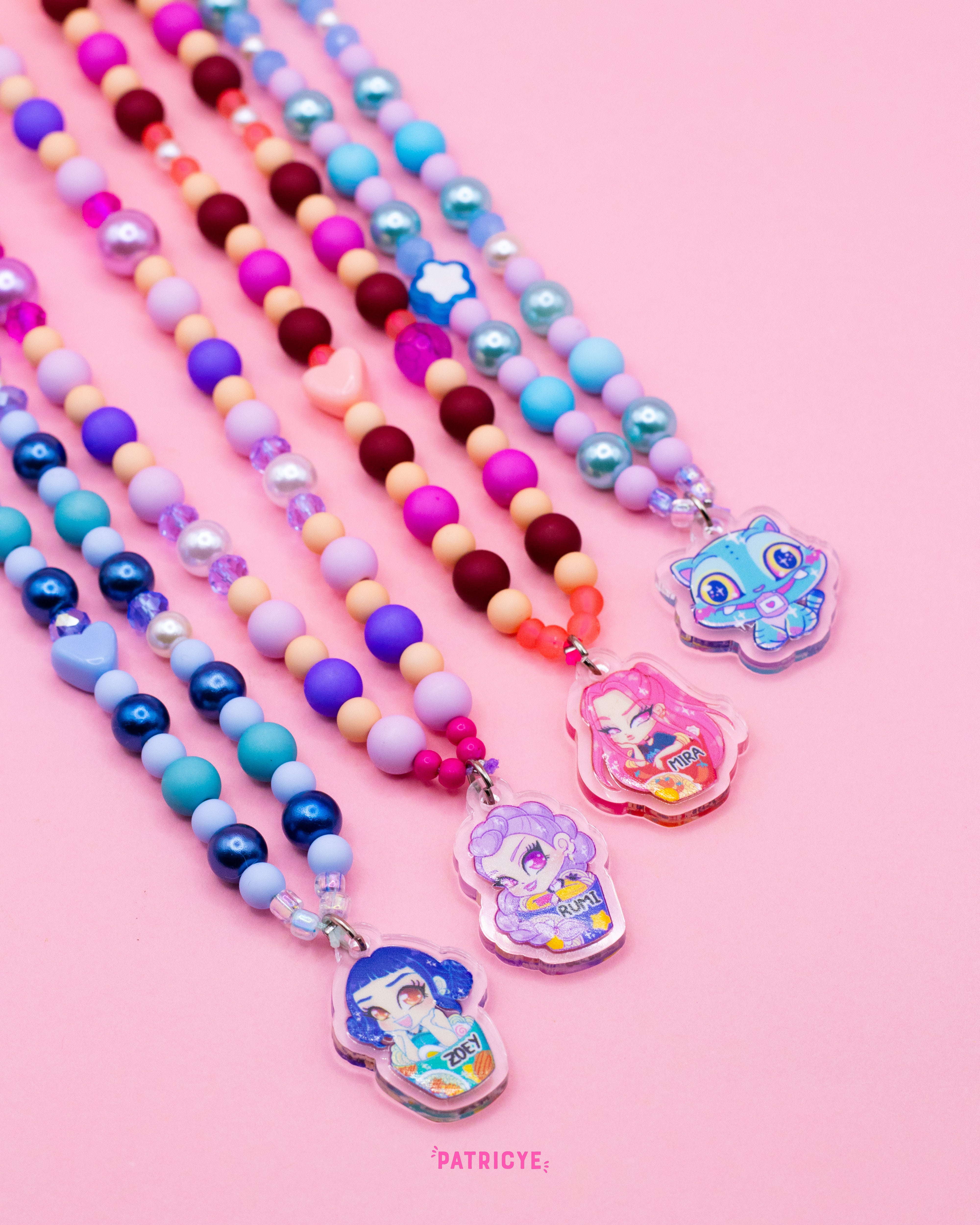 De adorno lleva un charm de Derpi de KPOP Demon Hunters.