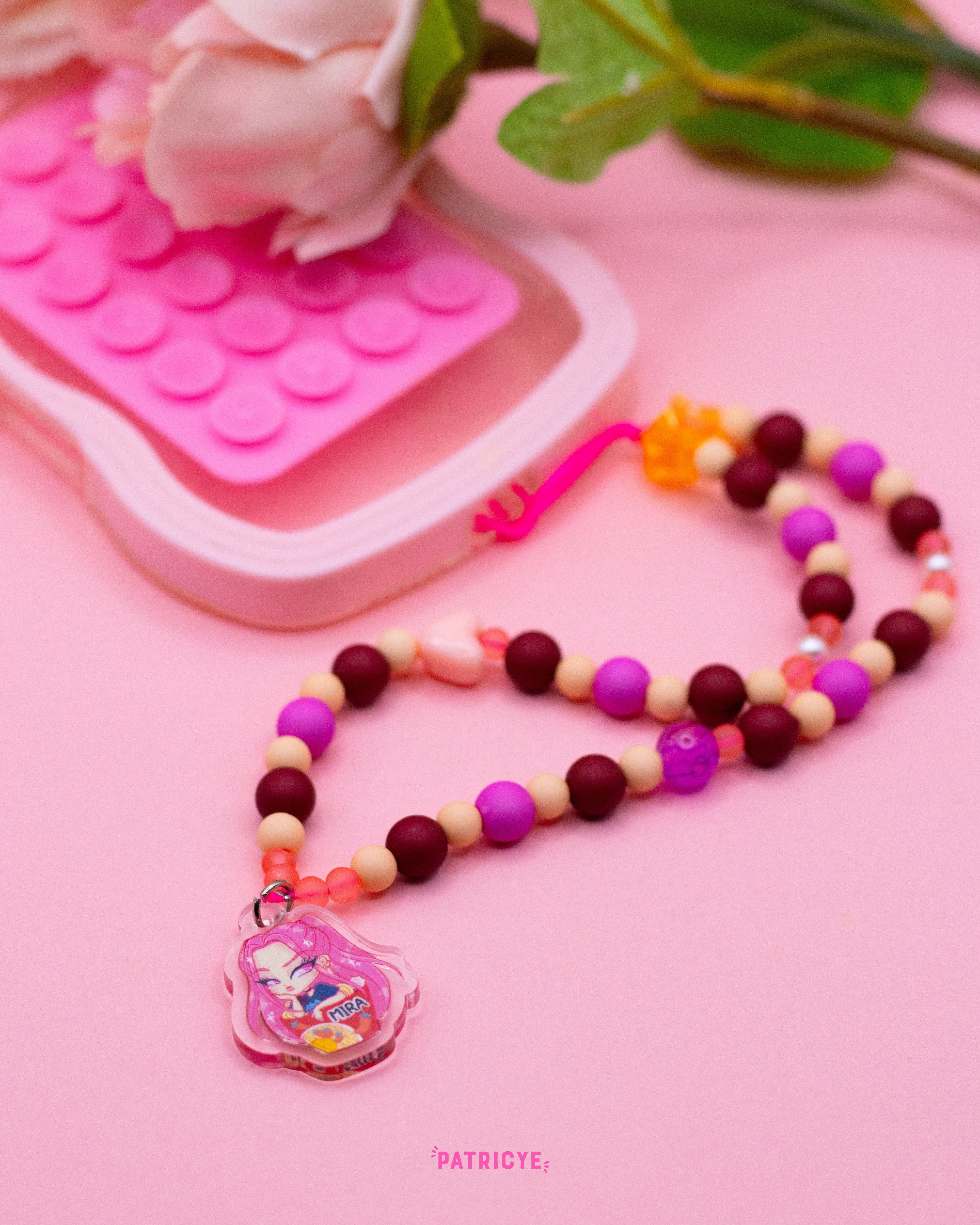 De adorno lleva un charm de Mira de KPOP Demon Hunters.