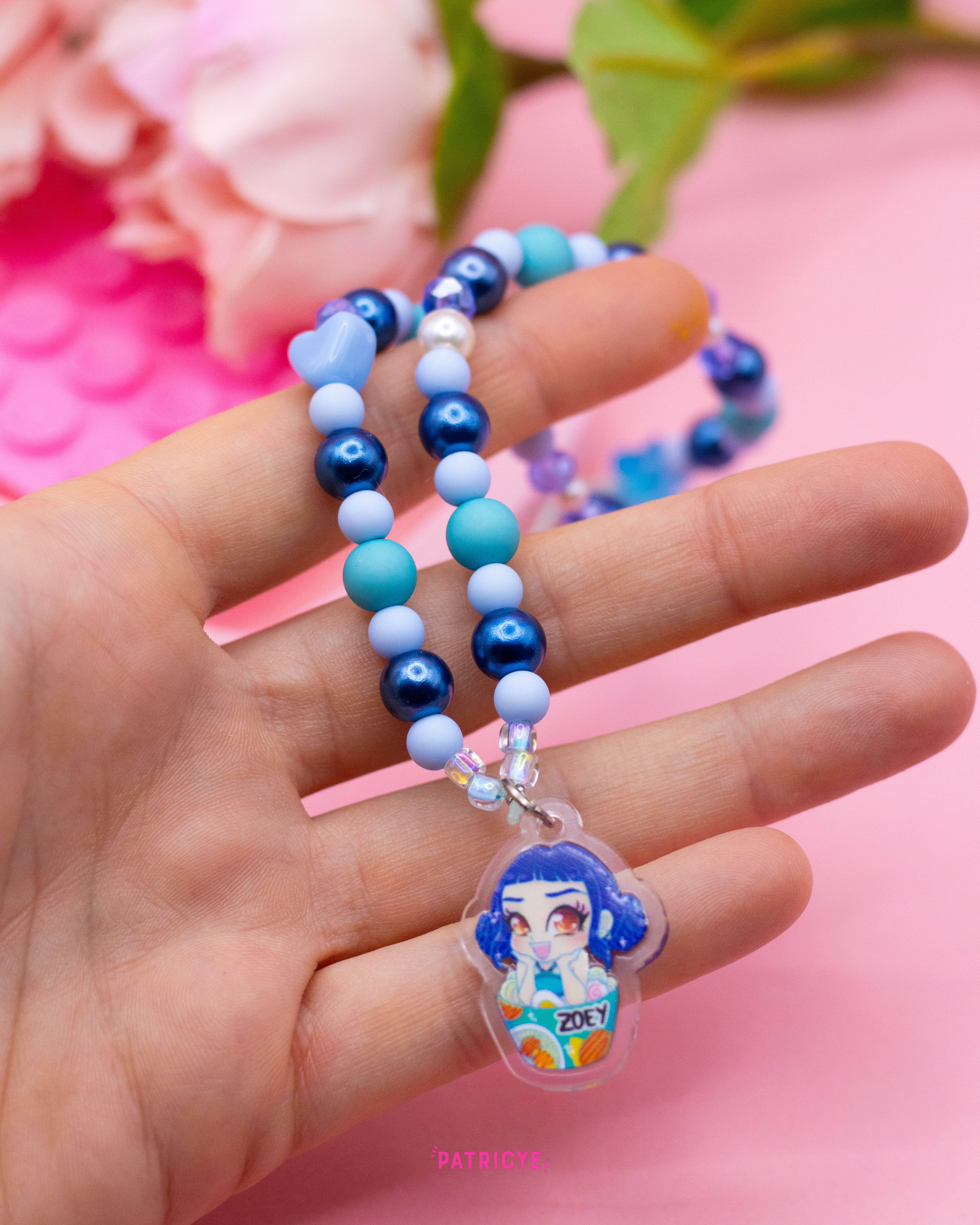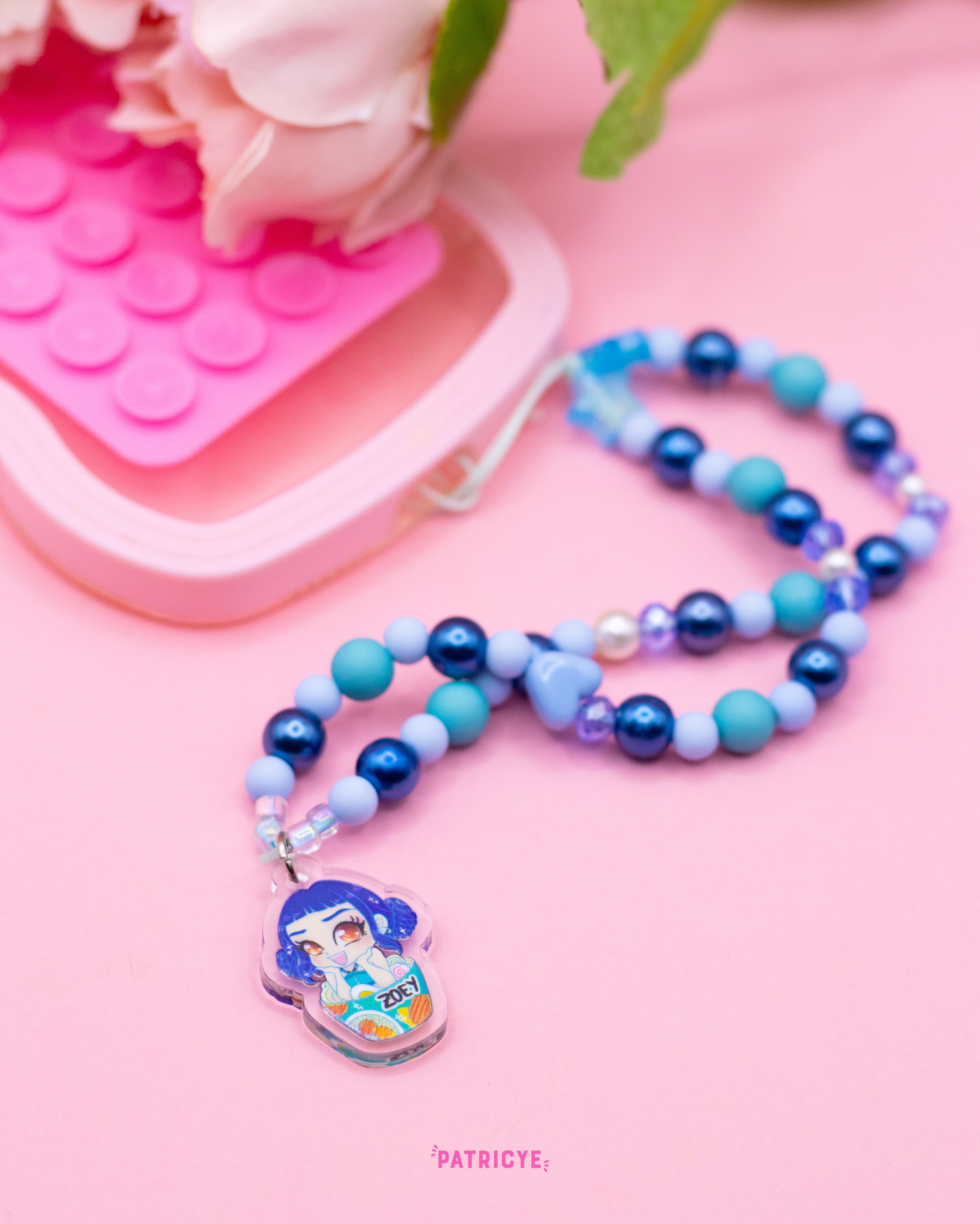 De adorno lleva un charm de Zoey de KPOP Demon Hunters.