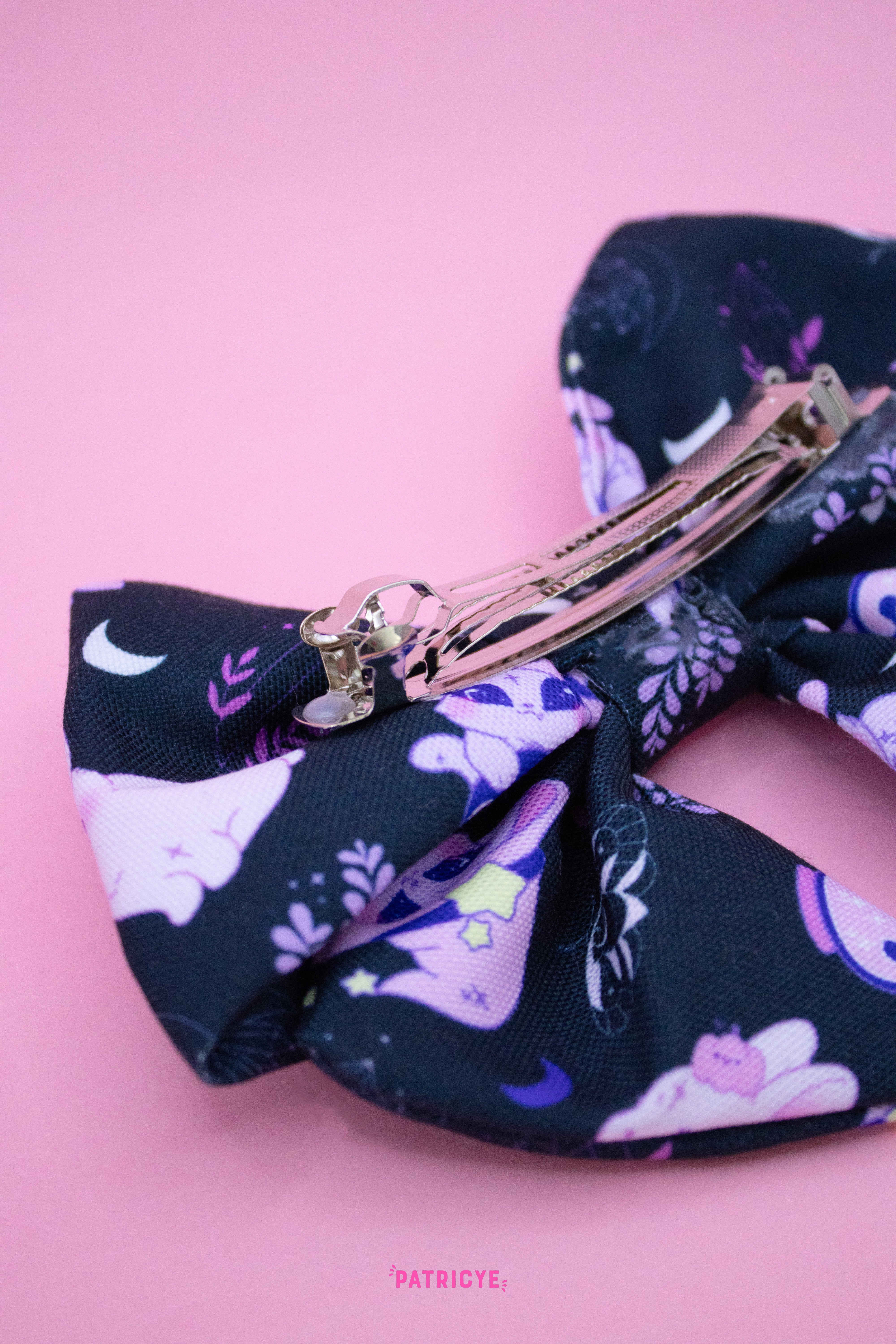 Este maxilazo fusiona la esencia spooky de Halloween con una paleta sofisticada de negro y malva pastel, creando un contraste cautivador y único. Su pinza grande garantiza una sujeción segura y duradera, permitiéndote lucir impecable en cualquier ocasión festiva.