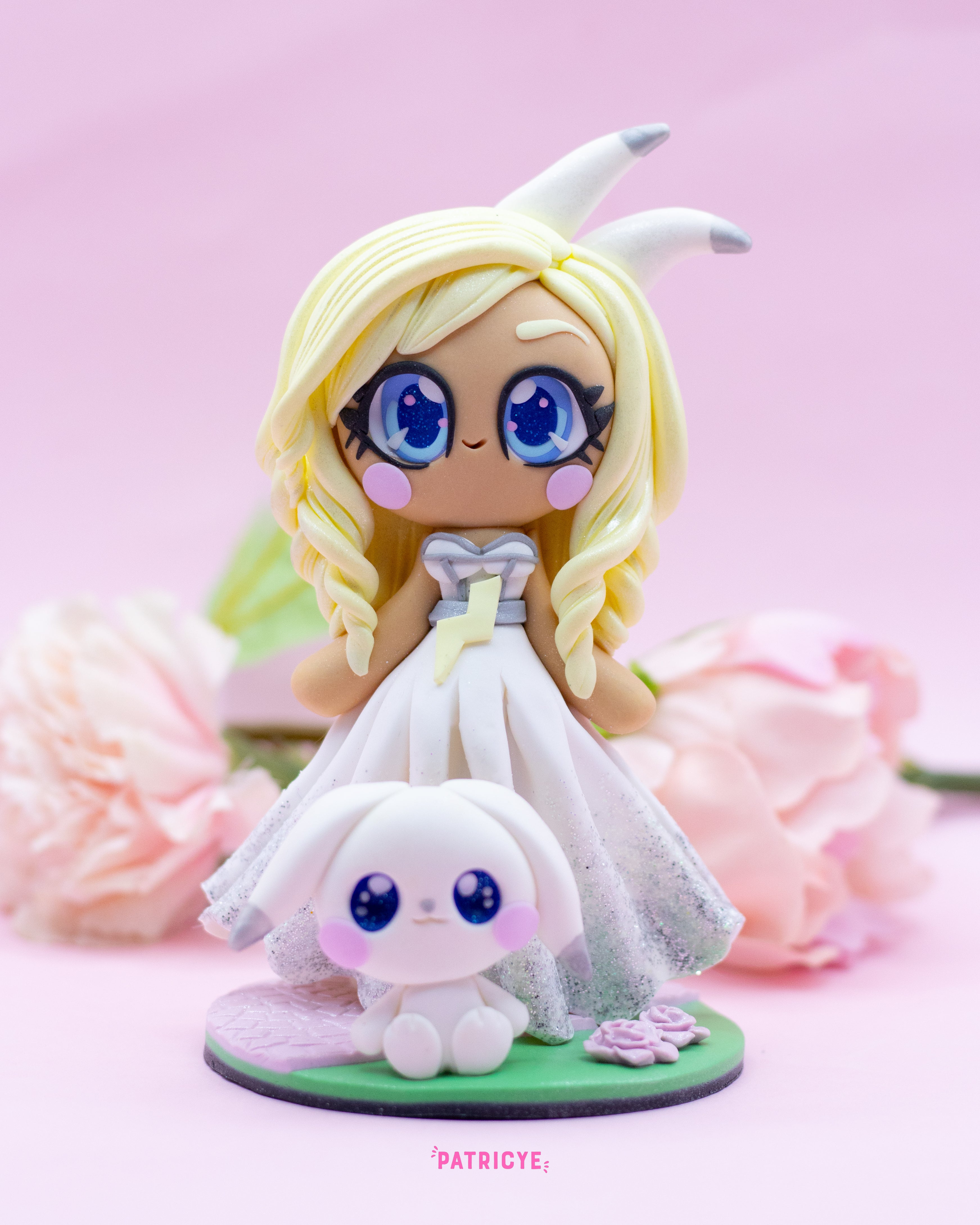 Chibi Premium Fanart de Peakychu, la versión de Pikachu en blanco por dar su energía a sus amigos Pokémon enfermos. El vestido contiene glitter.
