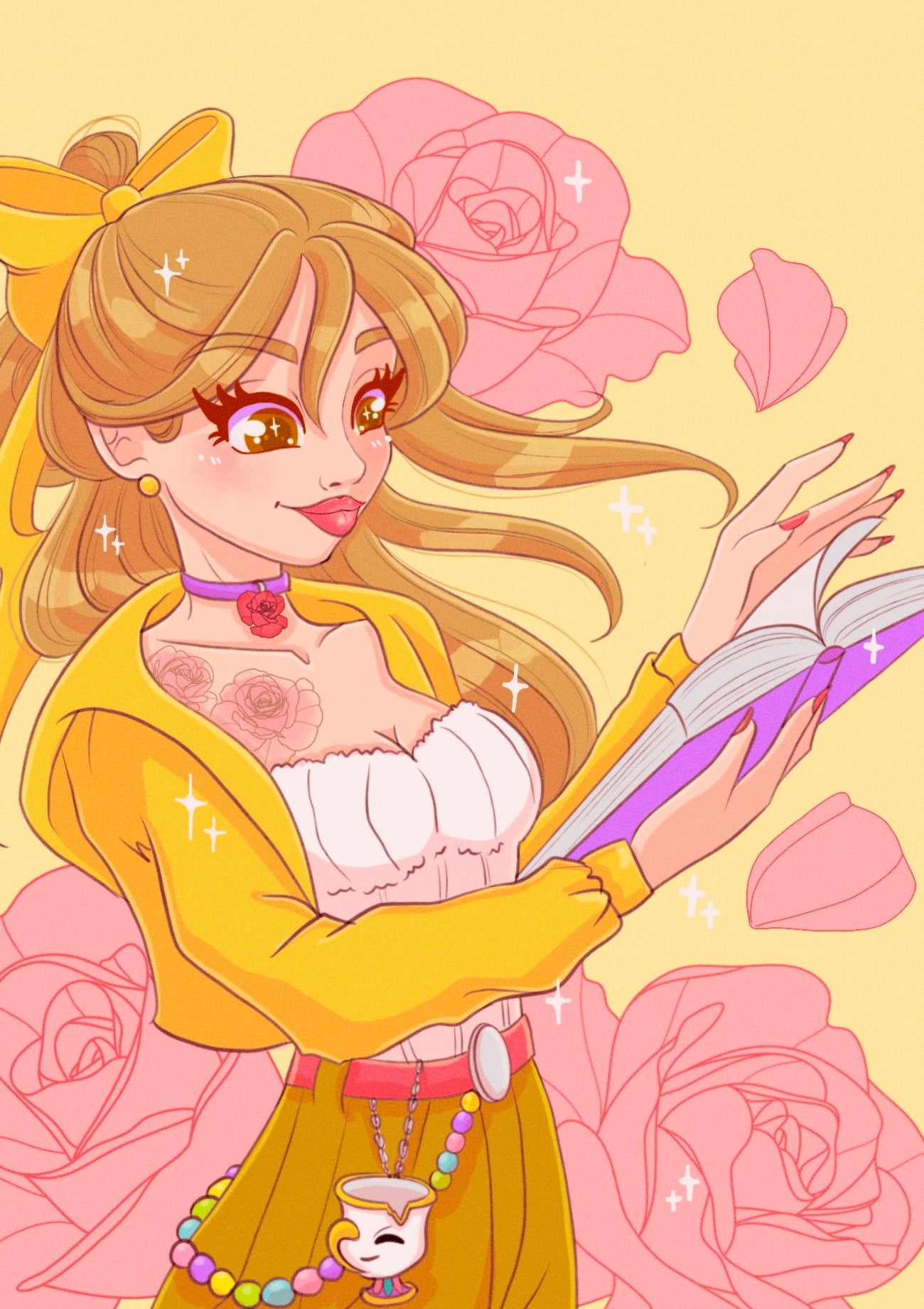 Ilustración basada en Bella con un estilo japonés del barrio de Harajuku.