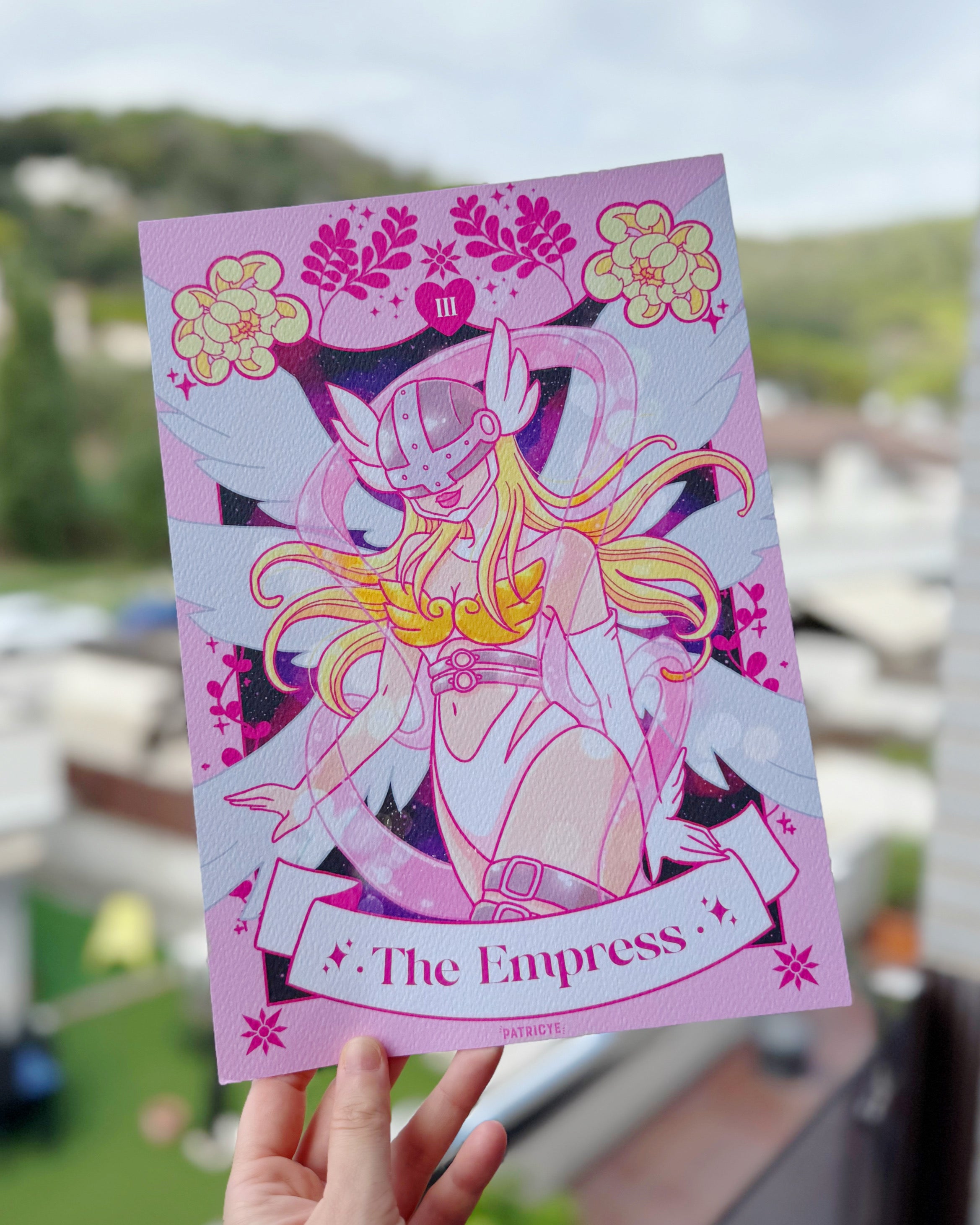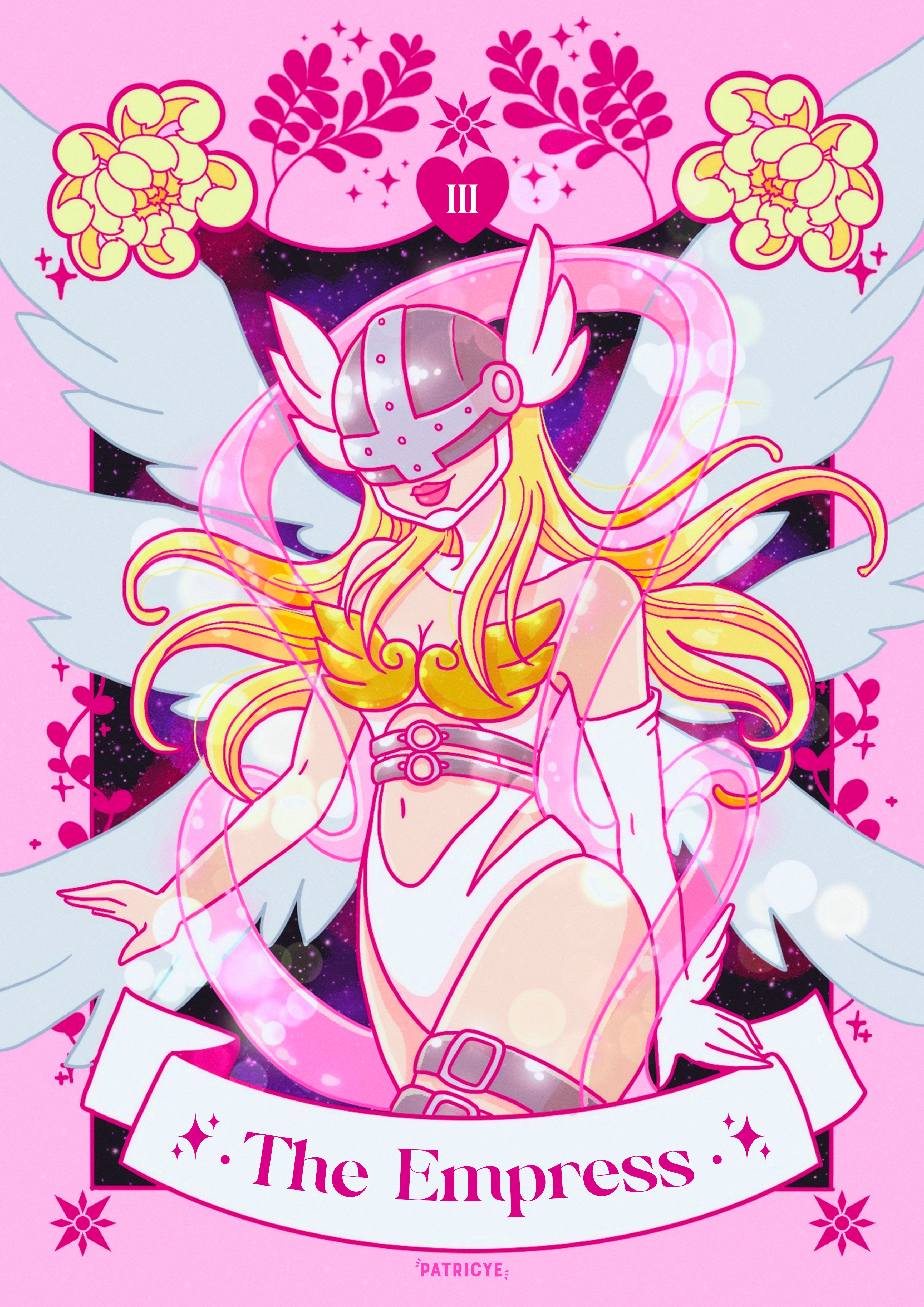 Ilustración basada en Angewomon representando la carta del Tarot "La Emperatriz".