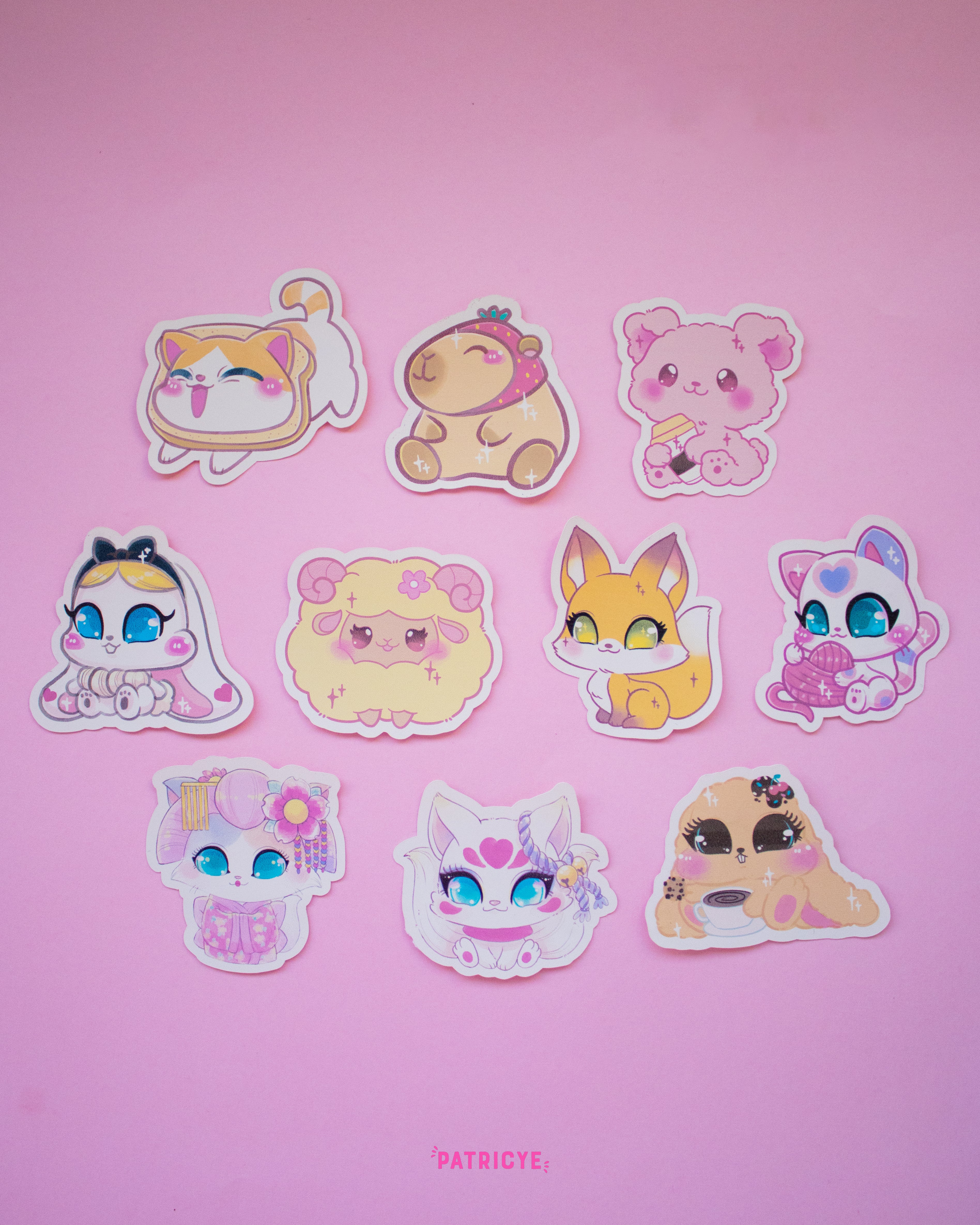 Stickers con acabado mate de varios personajes la mar de kawaii.